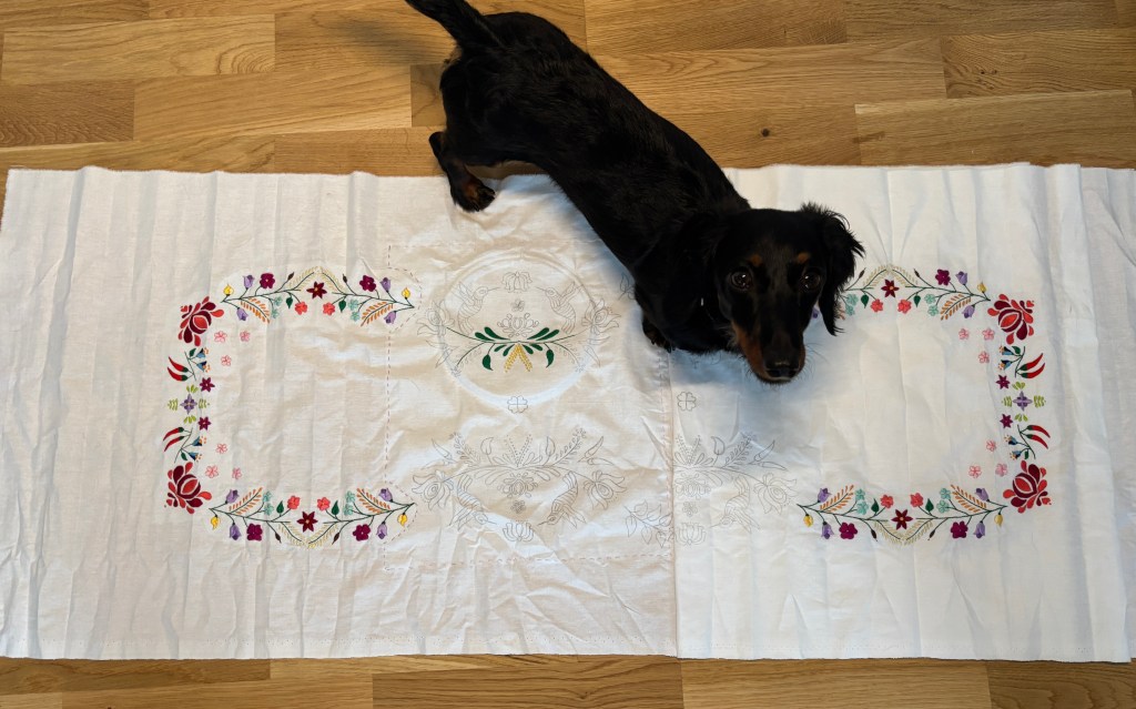 Additionally, my table runner has finally advanced to a new section. If you think a two meter long embroidered table runner can’t possibly take that long, think again. I go to sleep with sore fingers and forearms every night because of how much I’ve been working with my hands lately.