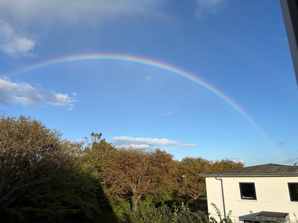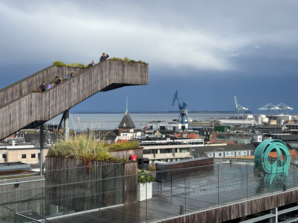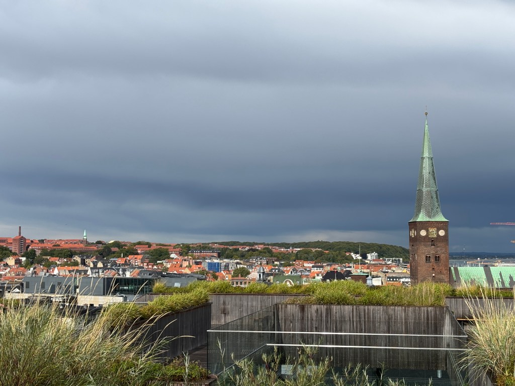 In the early afternoon I arrived in Aarhus, immediately greeted by a handsome man and a huge downpour of rain. We rushed into a food hall at the station and had some burgers (key to my heart). He then showed me around the city center. We went around the shopping streets and up the Salling Rooftop, which is a glass lookout structure atop a large commercial building. It offered great views of the city, including the main streets, the famous art museum AROS, the city hall clock tower, and the Aarhus cathedral. While it is a distinctively Danish city, I found it to be quite different from Copenhagen– the architecture is much more industrial and the university students are the beating heart of the city, whereas Copenhagen is more catered to tourists, workers, and the royal family. Once the rain finally passed and the sun came out, I was able to see a rainbow.