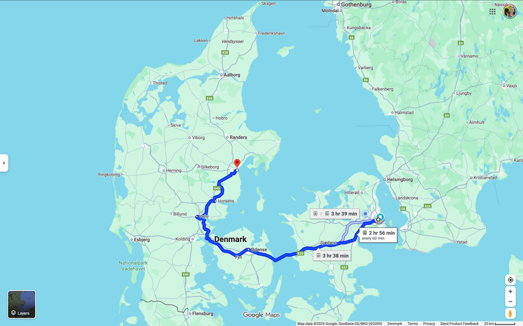 The three and a half hour bus ride was the reason for one of my early mornings. I stopped at my local bakery and got myself a croissant, a strawberry cake and a coffee, and made my way to the city. The bus station was right next to the hotel my family stayed in during our first week in Denmark. When I boarded the bus I was assigned an aisle seat on the lower level. Two girls approached me: one of them was assigned the window seat next to me, and the other was assigned a seat on the second level. They asked me to switch with them so that they could sit together. I ended up getting a window seat on the second level with no one next to me. It was absolute heaven. Three and a half peaceful hours spent taking a nap, listening to music, drawing, and taking pictures and videos along the way. After crossing the Storebæltsbroen (Great Belt Bridge) that connects the islands Sjælland (Zealand) and Fyn (Funen), the bus stopped briefly in Odense, the third largest city in Denmark. The largest city is Copenhagen, the second largest is Aarhus. Odense is also the birthplace of Hans Christian Andersen, author of fairy tales such as “The Little Mermaid” and “The Ugly Duckling.”