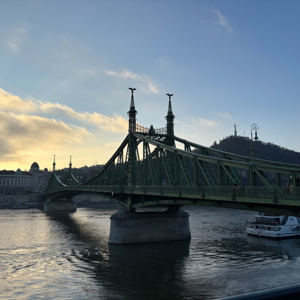Last episode you read about my family’s day trip to Malmö, Sweden. I’ve been excited to write this episode because for the first time, my family was able to return to Hungary! My parents haven’t been there since they left in 2000, but my sister studied abroad there in the fall of 2023, and I was able to visit her there for about five days. Lilla had just accepted a new job and as a result was able to fund our plane tickets and some dinners for the weekend while she takes a two week break between jobs. I had to find coverage for three shifts at the café, and we entrusted our neighbors to take care of Nudli while we were gone. We woke up at 4am on Friday morning for our 8am flight to Budapest, where I saw the most beautiful sunrise from the plane flying over Slovakia’s Tatras mountain range.